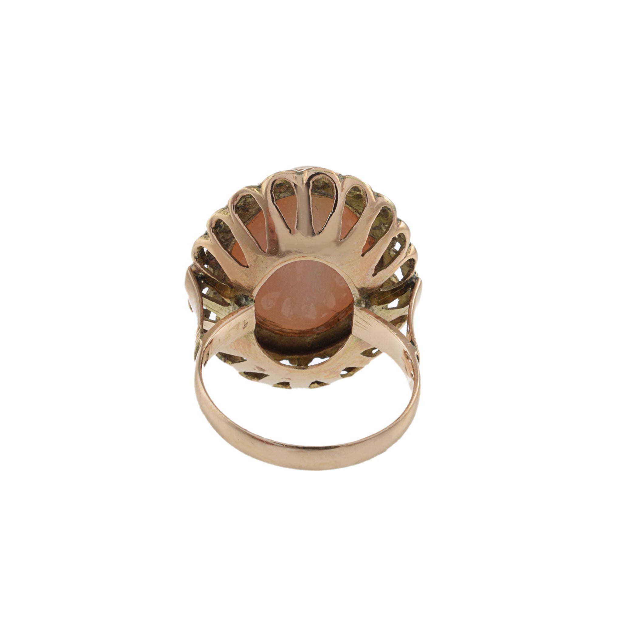 14KT Rose Gold Antique Natural Large Oval Cabochon Pink Coral Ring