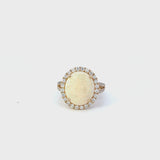 14KT YELLOW GOLD OPAL AND DIAMOND RING, ONE OVAL OPAL 4.16CT TW, DIAMOND 0.88CT TW VS