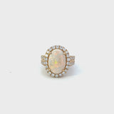 14KT Yellow Gold Round Cut Diamond And Oval Opal Center Ring