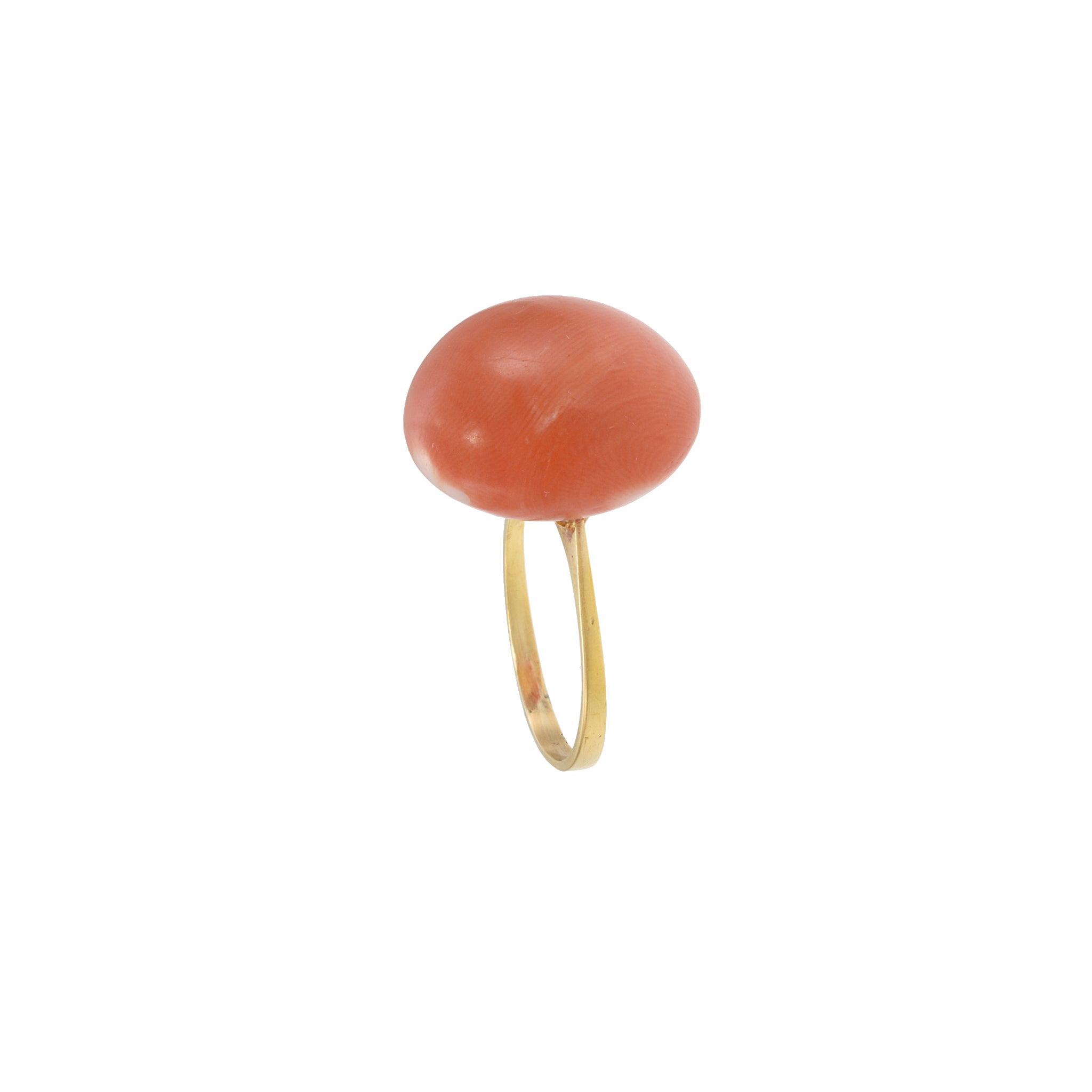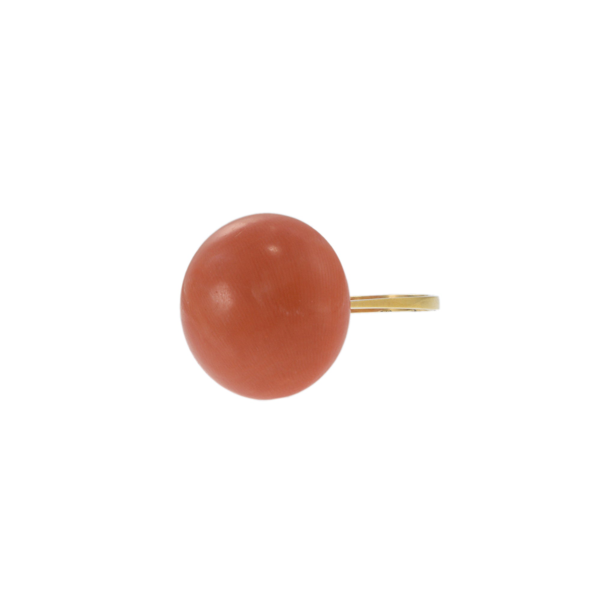 18KT Yellow Gold 1970s Fire Coral Cabochon Cocktail Ring