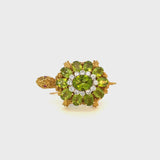 18KT Yellow Gold Estate Retro Peridot And Diamond Turtle Brooch