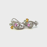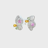 Expertly crafted with 14KT white gold and adorned with multi-colored sapphires and diamonds, these earrings are a stunning addition to any jewelry collection. With 1.00 carats of vibrant pink, yellow, and green sapphires, and .40 carats of sparkling round cut diamonds, these earrings offer a sophisticated and eye-catching touch to any outfit. Elevate your style and showcase your discerning taste with these vintage-inspired diamond swirl huggie earrings.